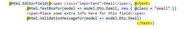 @Html.EditorField(@<span class="important">Email</span>, @<text>