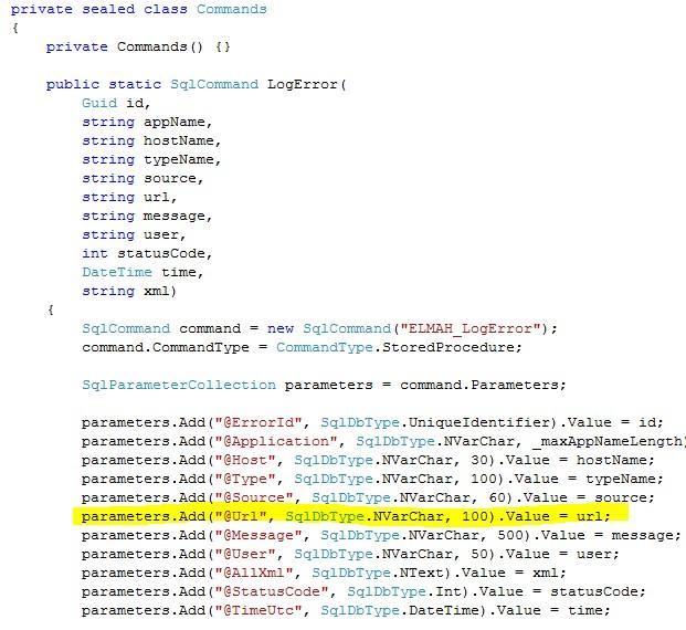 And the last thing to change is in the private class Commands inside ErrorLog.cs