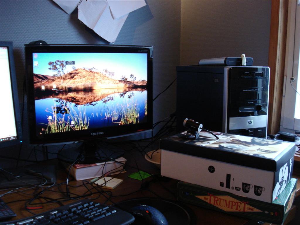 Now I only needed to start a video call over msn to Emil and he could now see exactly what I saw. The webcam didn't really manage to capture the whole screen so we had to work on a pretty small area(maybe 2/5 of the monitor) and that combined with the large font we needed to have to make the text visible in the video forced me to scroll quite a bit.